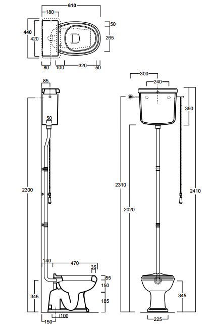 SIMAS Arcade/Londra Высокая труба с механизмом слива для бачка AR802/LO902,цвет хром